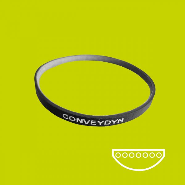 The CONVEYDYN is a new elastic power transmission belt, specially dedicated to roller conveyor equipped with O-ring round belts in straight lines and in curves.